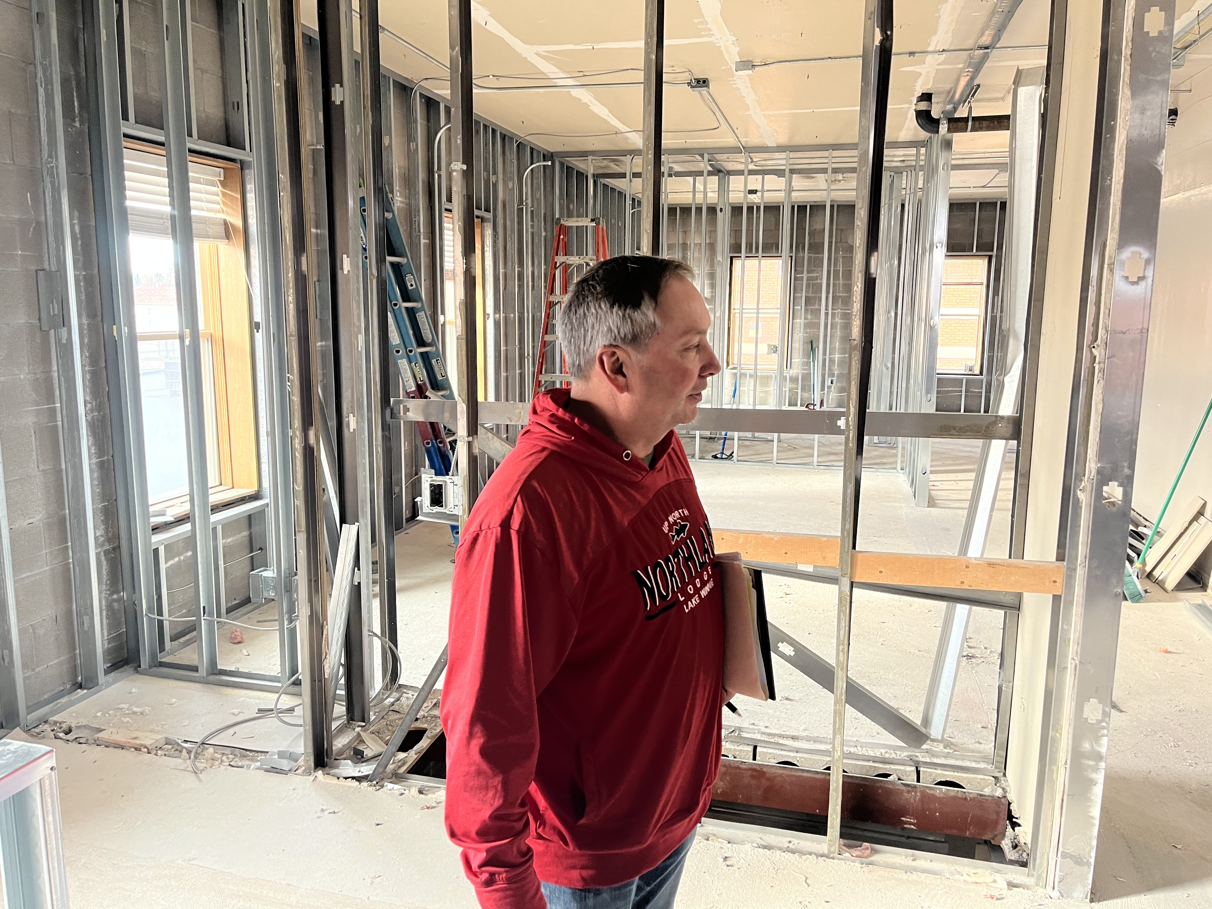 Office framing is happening now November 4, 2025 Who is the guy in the red sweatshirt? He is the one making it all happen. Thank you Jim Bright!